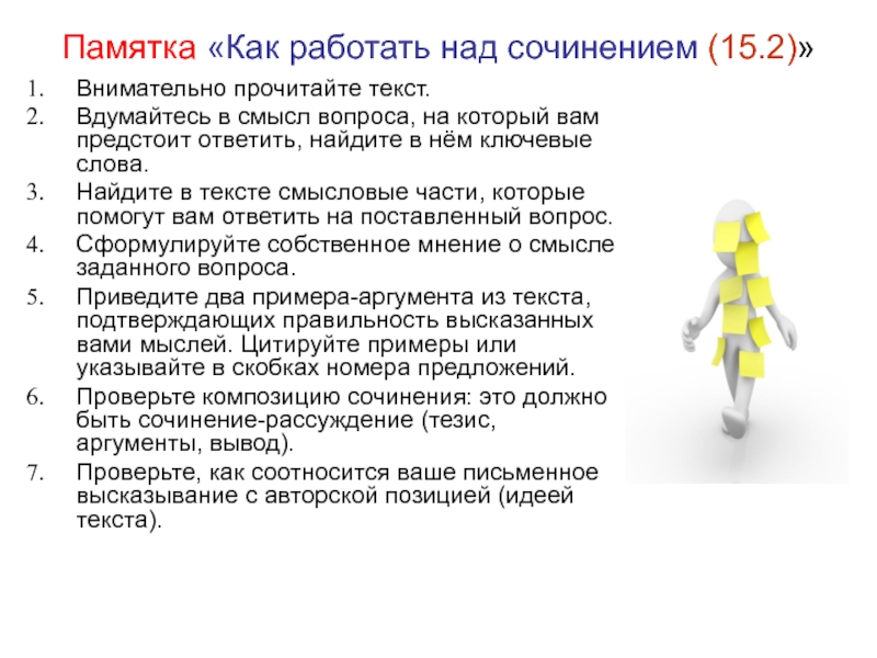 Слайд 31Памятка «Как работать над сочинением (15.2)»