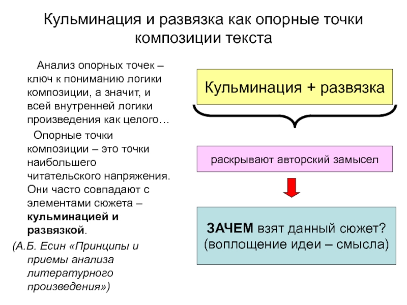Слайд 25Кульминация и развязка как опорные точки композиции текста
