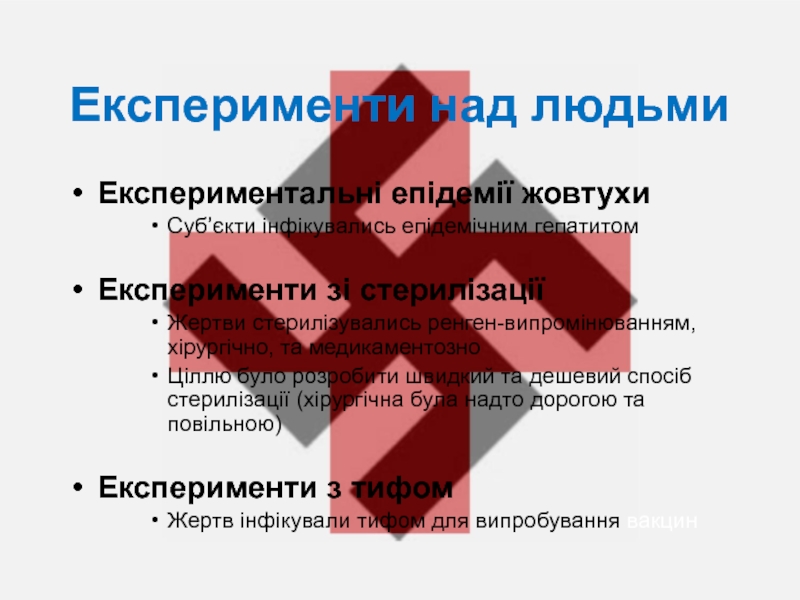 Слайд 29Експерименти над людьми