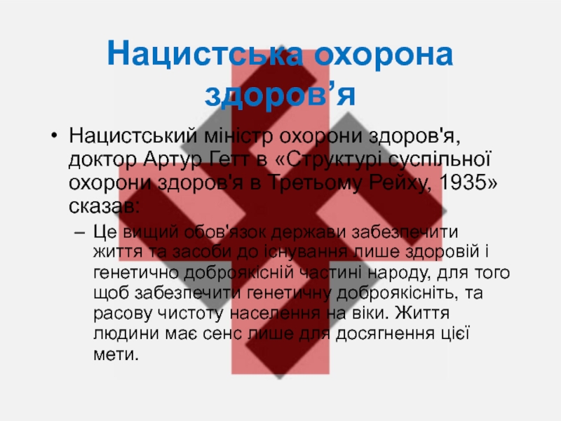 Слайд 14Нацистська охорона здоров’я