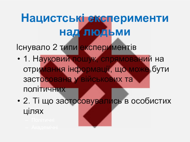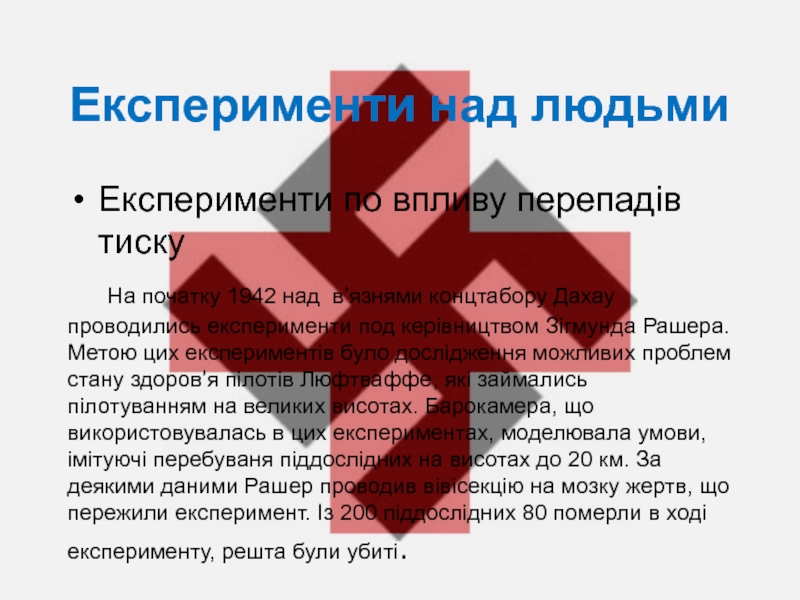Слайд 25Нацистські експерименти над людьми