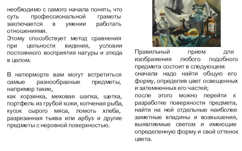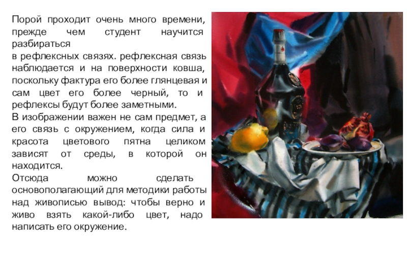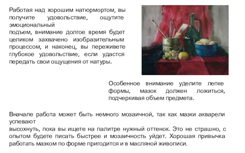 Слайд 2Работая над хорошим натюрмортом, вы получите удовольствие, ощутите эмоциональный