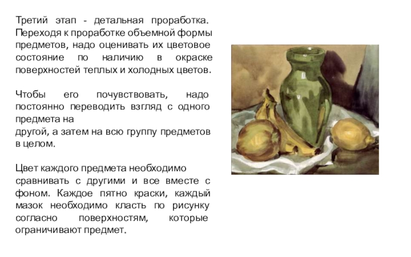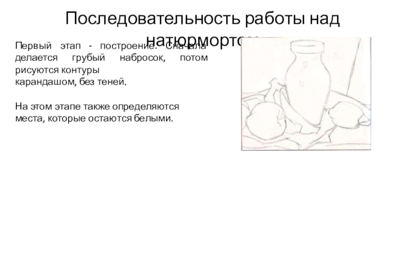 Слайд 4Последовательность работы над натюрмортом