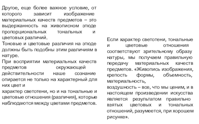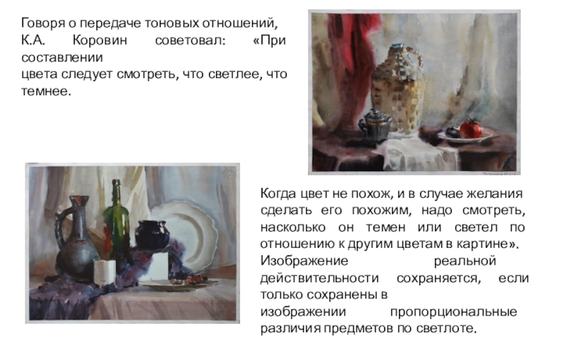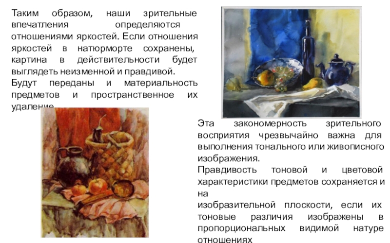 изобразительной плоскости, если их тоновые различия изображены в пропорциональных видимой натуре отношениях