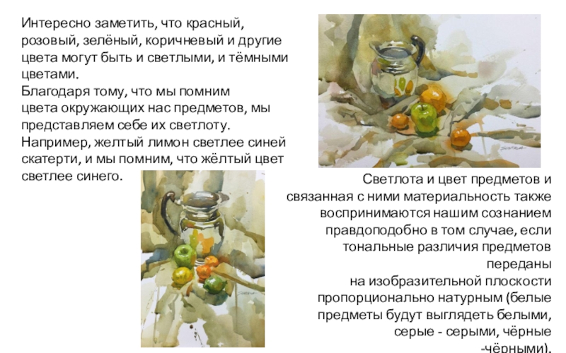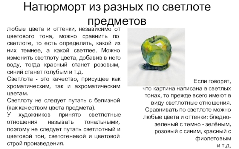 Светлота и цвет предметов и