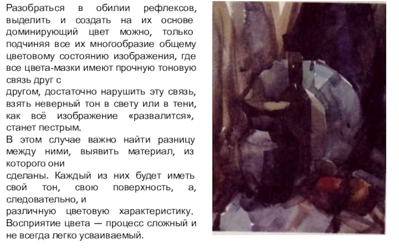 другом, достаточно нарушить эту связь, взять неверный тон в свету или в тени, как всё изображение «развалится», станет пестрым.