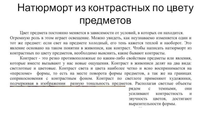 Слайд 41Натюрморт из контрастных по цвету предметов