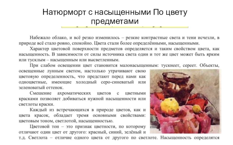 Слайд 33Натюрморт с насыщенными По цвету предметами