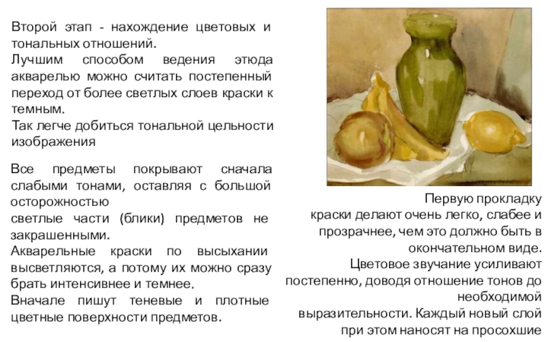 ведения этюда акварелью можно считать постепенный переход от более светлых