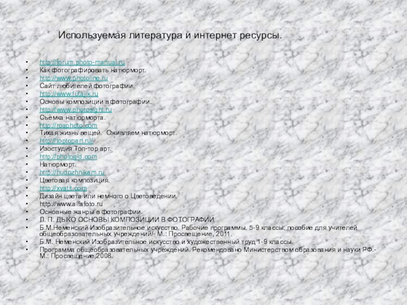 Используемая литература и интернет ресурсы.