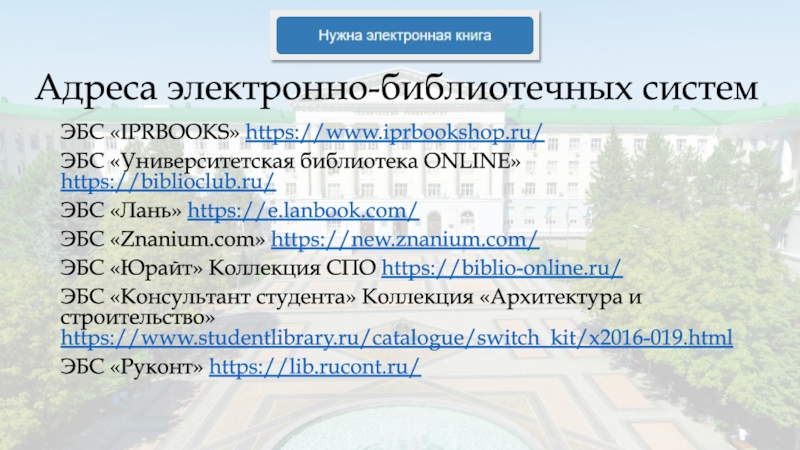 Адреса электронно-библиотечных систем