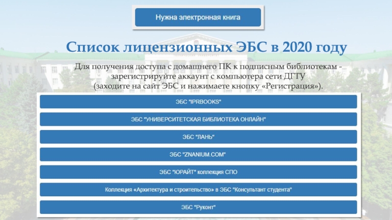 Слайд 10Список лицензионных ЭБС в 2020 году