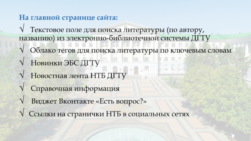 Слайд 2Сайт научно-технической библиотеки ДГТУ