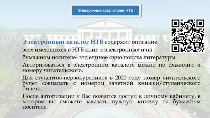 Слайд 5Электронный каталог НТБ содержит описание
