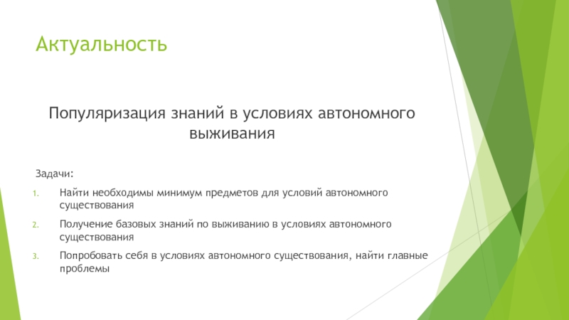 существованияПопробовать себя в условиях автономного существования, найти главные проблемы