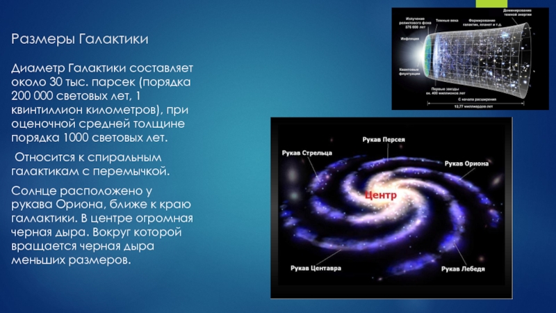 Диаметр Галактики составляет около 30 тыс. парсек (порядка 200
