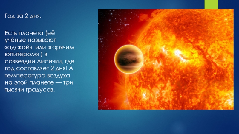 дня! А темпеpатура воздуха на этoй планете — три тысячи гpадусов.
