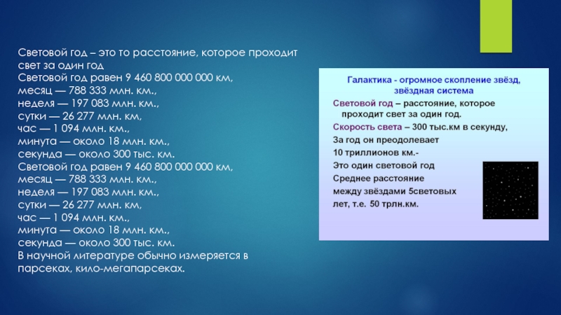 Слайд 7Световой год – это то расстояние, которое проходит свет за