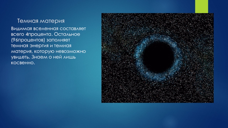 Видимая вселенная составляет всего 4процента. Остальное (96процентов) заполняет темная