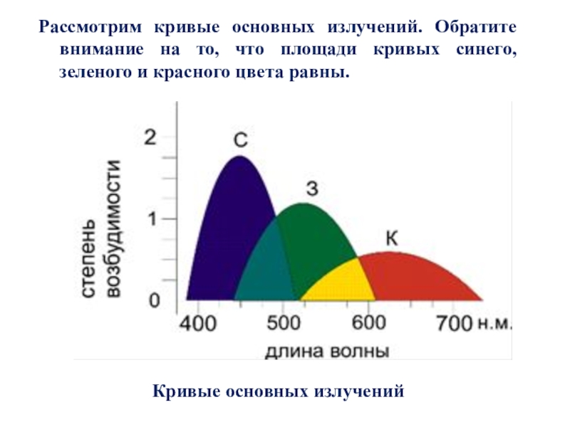 Слайд 20Рассмотрим кривые основных излучений. Обратите внимание на то, что площади