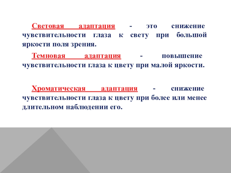 Хроматическая адаптация - снижение чувствительности глаза к цвету при более или менее длительном наблюдении его.