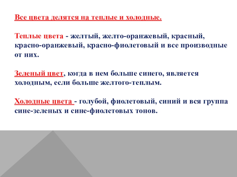 цвет, когда в нем больше синего, является холодным, если больше желтого-теплым.