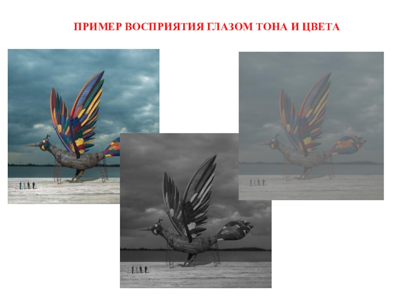 При уменьшении освещения цветовой тон начинает смещаться. Остаются только красный, зеленый, синий. Затем и они исчезают, синий постепенно переходит в белесый, красный - в черный.