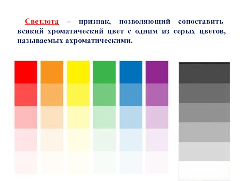 Слайд 17Светлота – признак, позволяющий сопоставить всякий хроматический цвет с одним