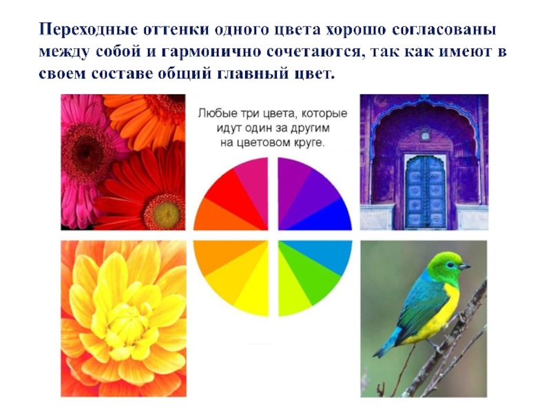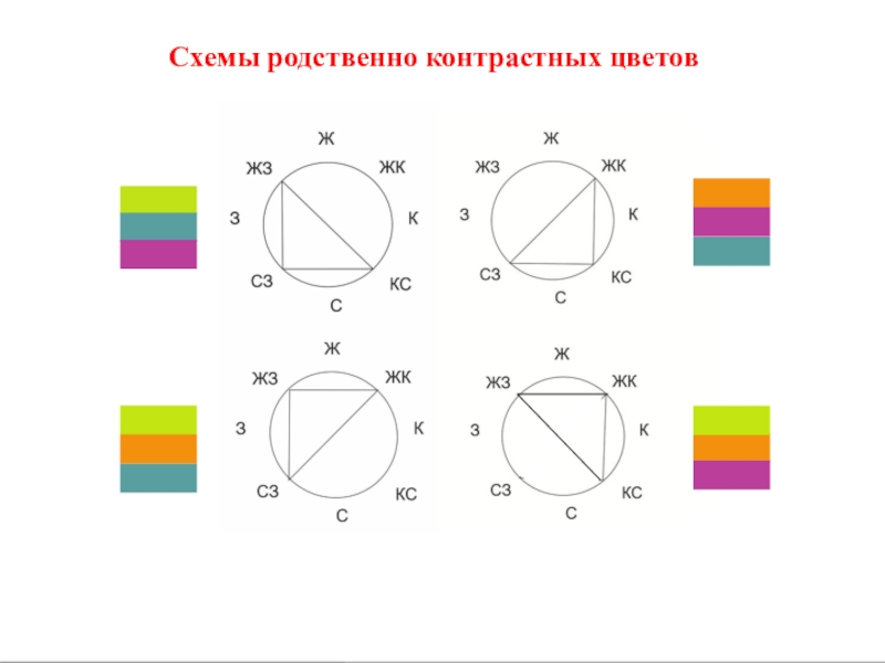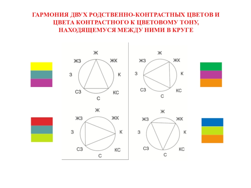 Слайд 42Гармония двух родственно-контрастных цветов и цвета контрастного к цветовому тону,