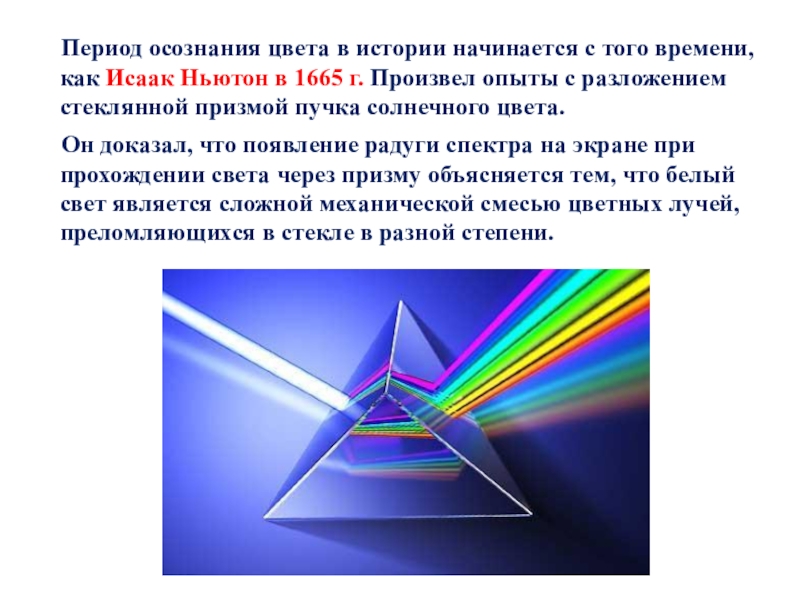 Исаак Ньютон в 1665 г. Произвел опыты с разложением стеклянной