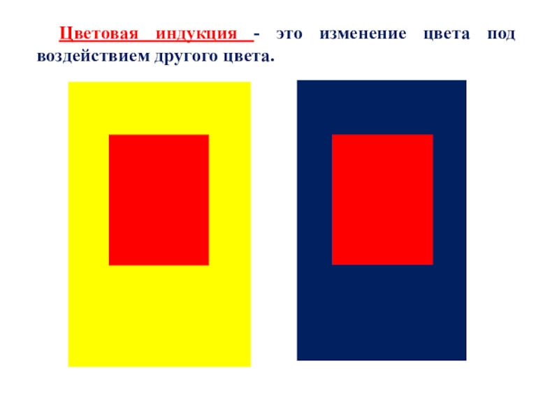 Слайд 23Цветовая индукция - это изменение цвета под воздействием другого цвета.