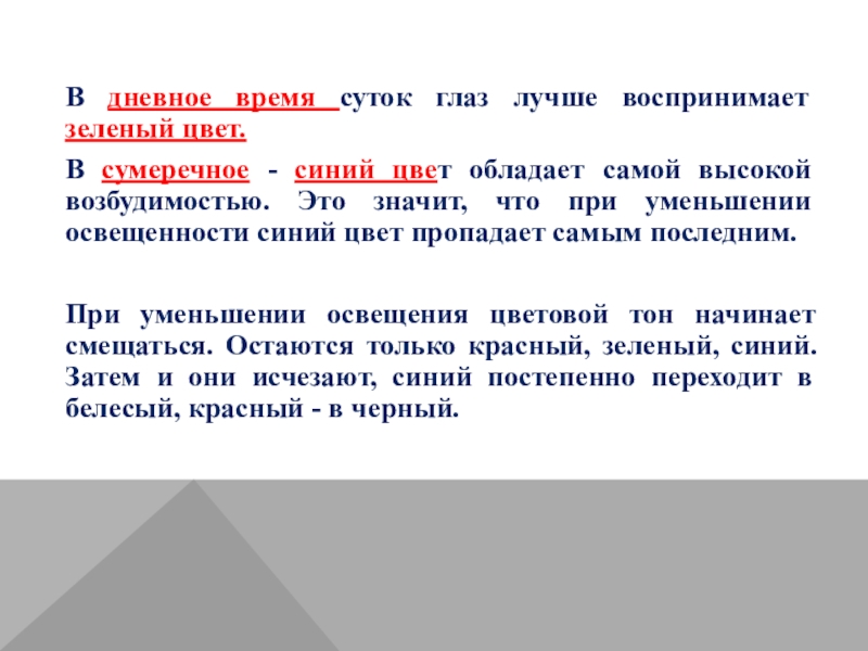 сумеречное - синий цвет обладает самой высокой возбудимостью. Это значит,