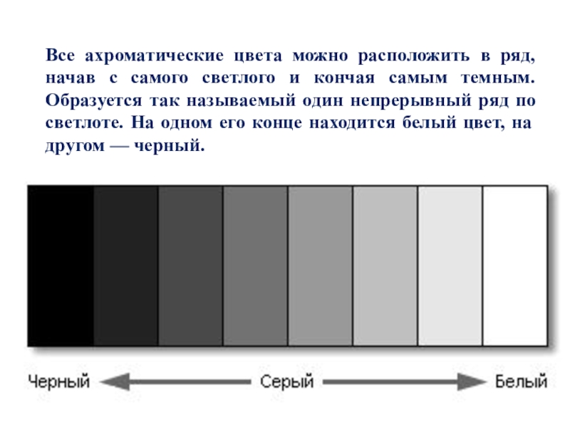 Слайд 11Все ахроматические цвета можно расположить в ряд, начав с самого