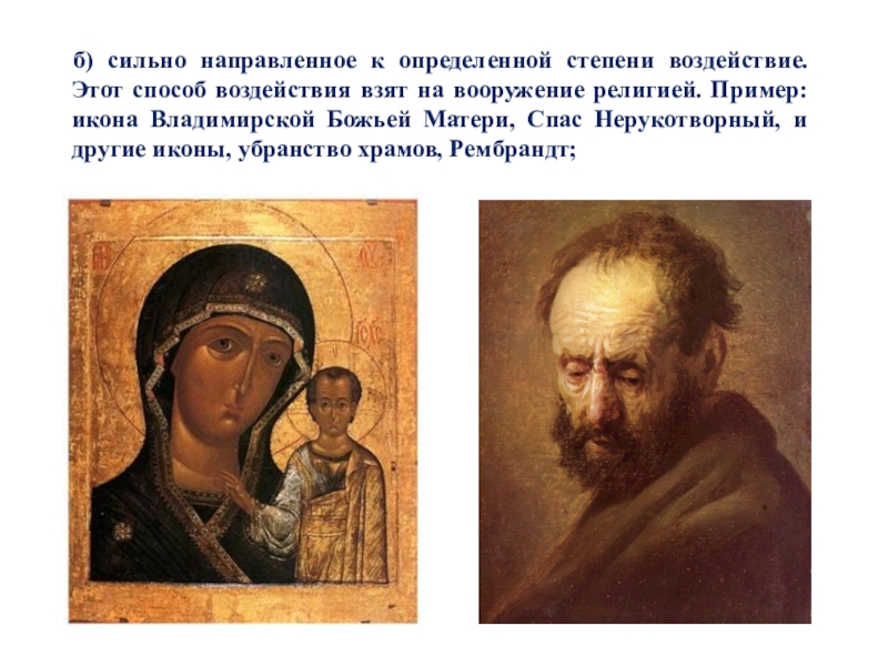 взят на вооружение религией. Пример: икона Владимирской Божьей Матери, Спас