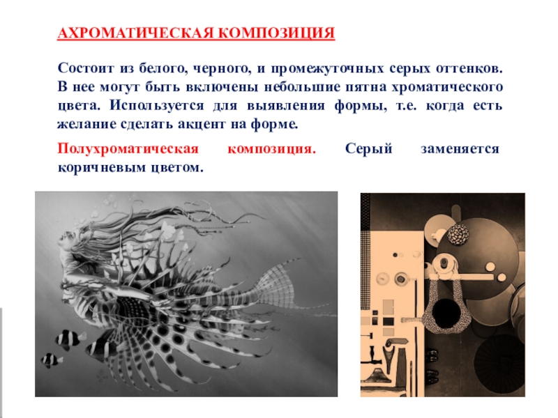 цветов, воспринимаемых как оттенки основного). Цвет + ахроматический цвет (белый,