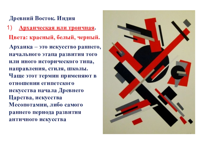 типа, направления, стиля, школы. Чаще этот термин применяют в отношении египетского искусства начала Древнего Царства, искусства Месопотамии, либо самого раннего периода развития античного искусства