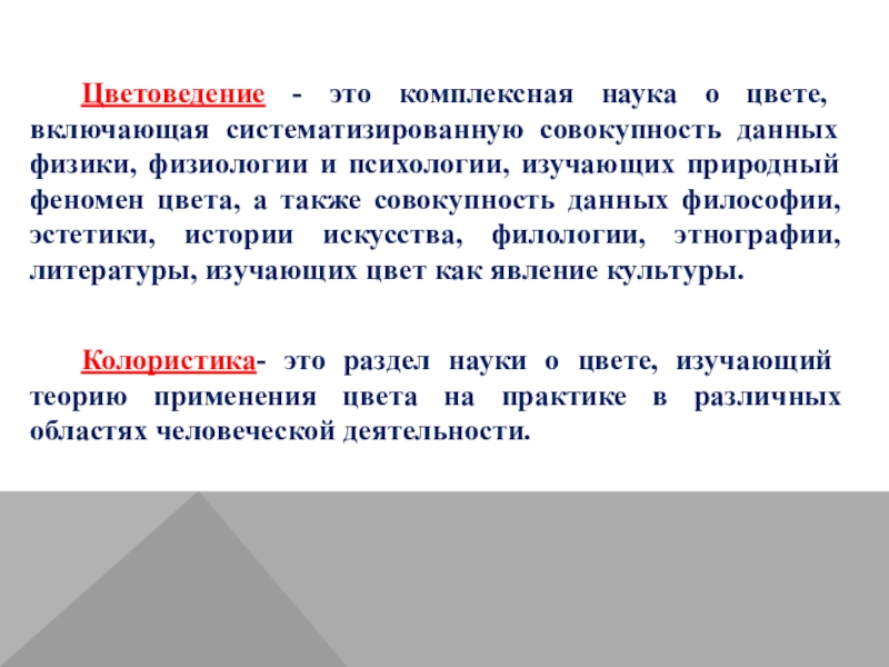Цветоведение - это комплексная наука о цвете, включающая систематизированную совокупность