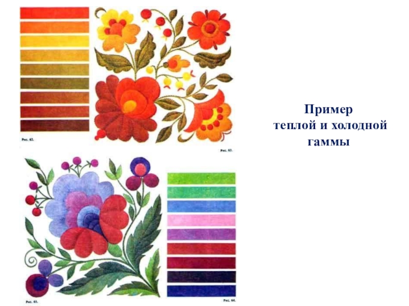взаимосвязанных оттенков цвета, используемых при создании художественных произведений. Выделяют теплую, холодную и смешанную гаммы.