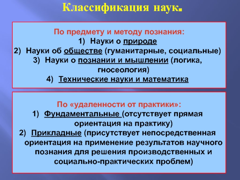 Прикладные (присутствует непосредственная ориентация на применение результатов научного познания для решения производственных и социально-практических проблем)