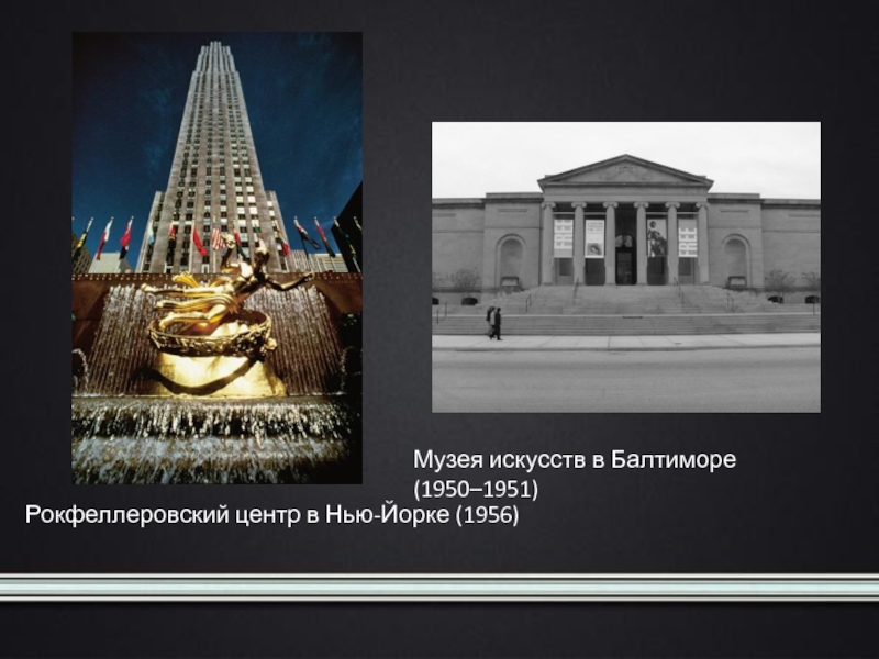 Музея искусств в Балтиморе (1950–1951)Рокфеллеровский центр в Нью-Йорке (1956)