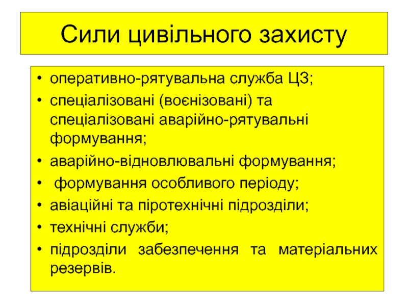 спеціалізовані (воєнізовані) та спеціалізовані аварійно-рятувальні формування;