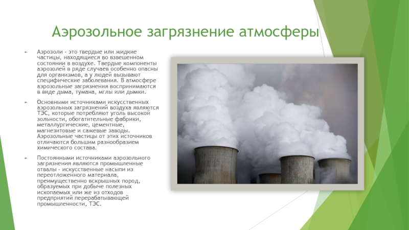 Слайд 14 Аэрозольное загрязнение атмосферы