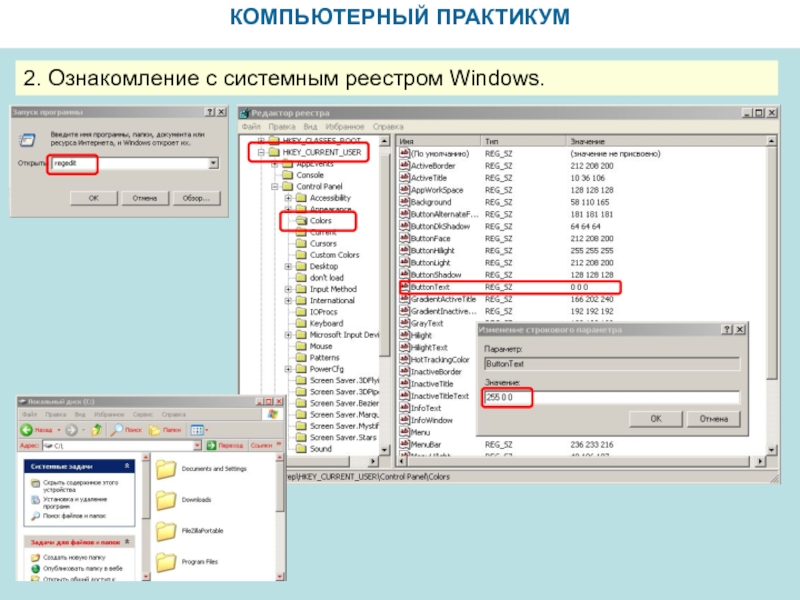 КОМПЬЮТЕРНЫЙ ПРАКТИКУМ2. Ознакомление с системным реестром Windows.