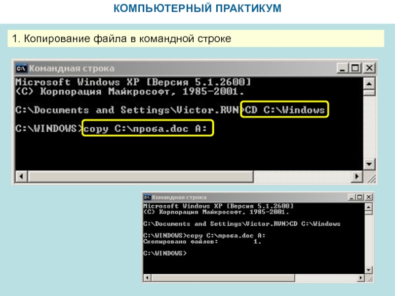 КОМПЬЮТЕРНЫЙ ПРАКТИКУМ1. Копирование файла в командной строке