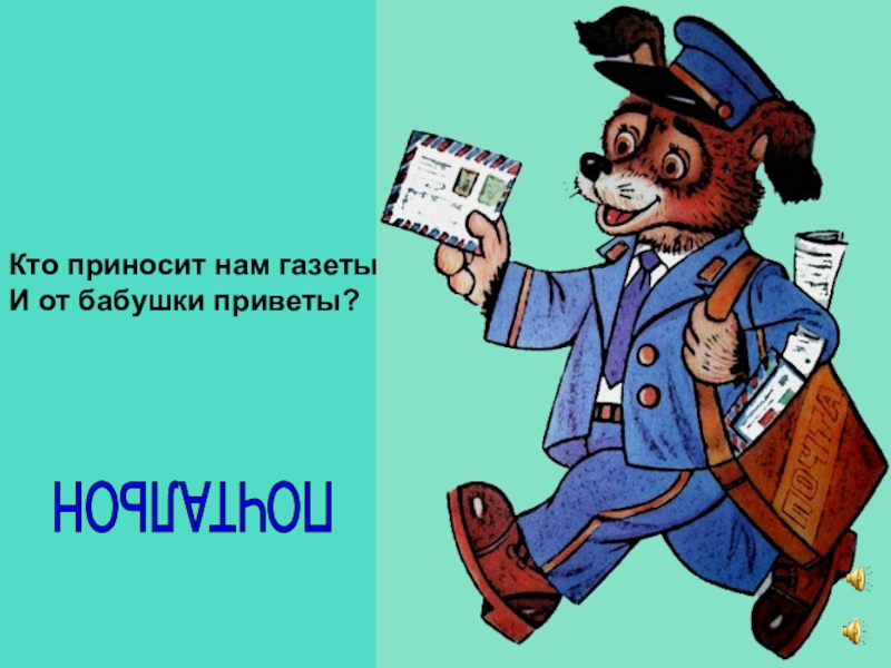 Кто приносит нам газетыИ от бабушки приветы?ПОЧТАЛЬОН
