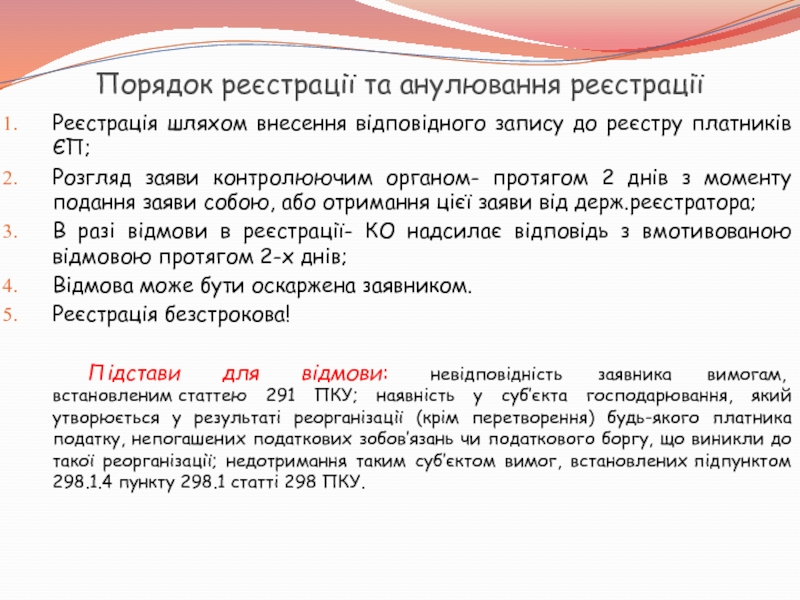 Слайд 12Порядок реєстрації та анулювання реєстрації