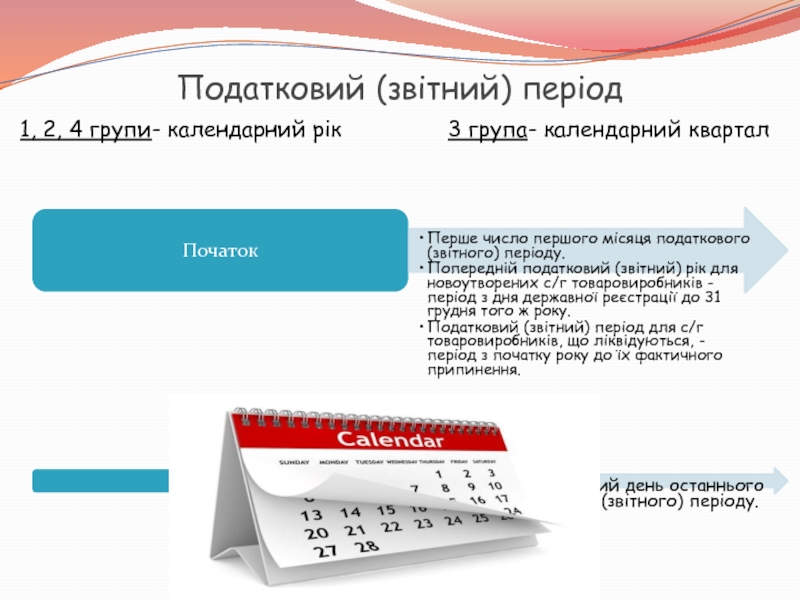 4 ГРУПА- сільськогосподарські товаровиробники, у яких частка сільськогосподарського товаровиробництва за попередній податковий (звітний) рік дорівнює або перевищує 75 %.