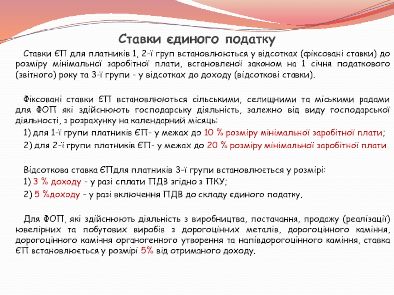 Ставки ЄП для платників 1, 2-ї груп встановлюються