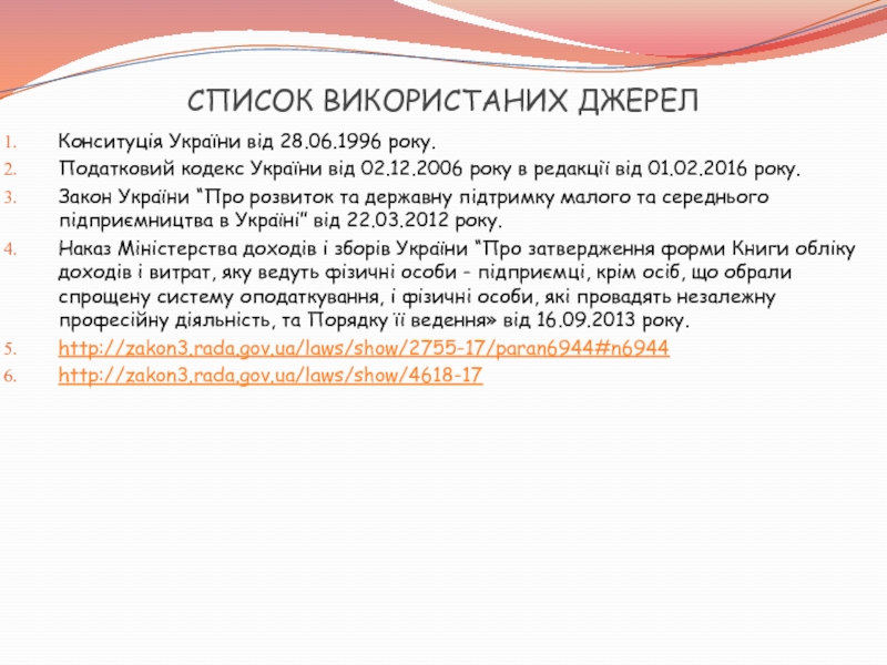 Слайд 17СПИСОК ВИКОРИСТАНИХ ДЖЕРЕЛ