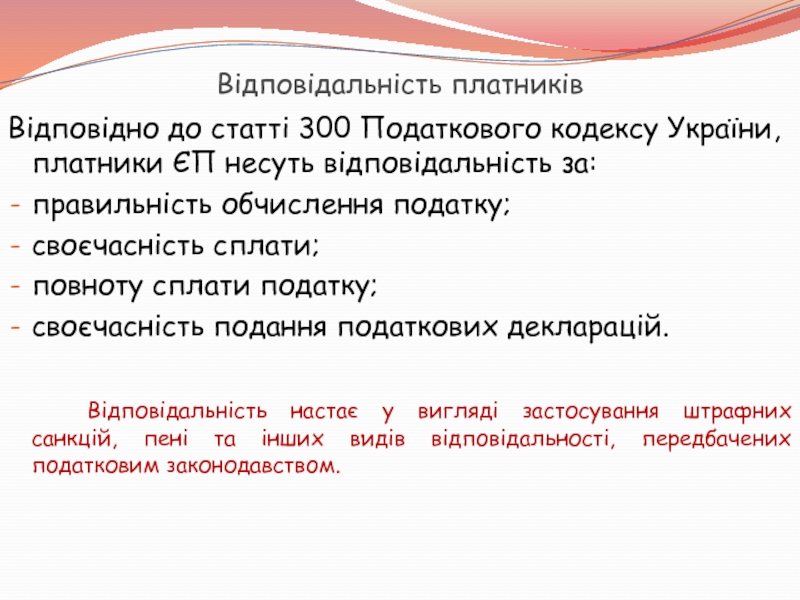 Платники єдиного податку несуть відповідальність на підставах, передбачених Податковим кодексом України.